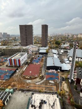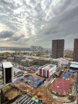 - светлые окна, выходящие не на соседний дом, а современную школу, которая откроется в 2026 году, а также вид на реку, лес и церковь.