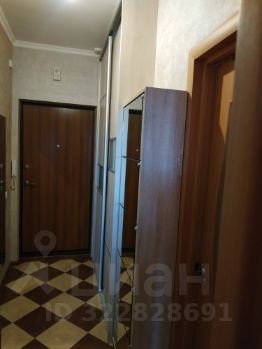 Гардеробная комната (двери-купе) и высокая обувница с зеркалом в коридоре.