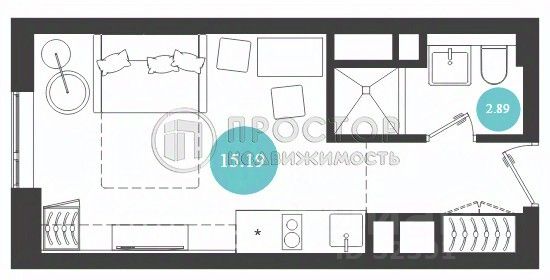 Квартира общей площадью — 18,7 кв. м., расположена на 24-м этаже, благодаря чему открывается прекрасный вид на город.