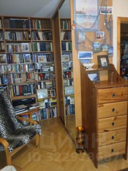 В ней встроенный шкаф-купе с зеркальной дверью и встроенный стеллаж.