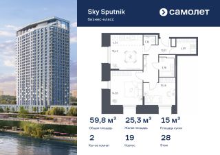 Строим кварталы для жизни с заботой о будущем. Предлагаются 2-комнатные апартаменты бизнес-класса 59,79 кв.м в корпусе 19 на 28 этаже, в Sky Sputnik