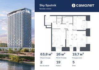 Строим кварталы для жизни с заботой о будущем. Предлагаются 2-комнатные апартаменты бизнес-класса 63,79 кв.м в корпусе 19 на 5 этаже, в Sky Sputnik