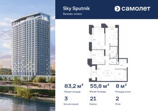 Строим кварталы для жизни с заботой о будущем. Предлагаются 3-комнатные апартаменты бизнес-класса 83,22 кв.м в корпусе 21 на 2 этаже, в Sky Sputnik