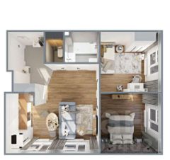 В квартире большая кухня - гостиная, спальня, детская комната, ванная, туалет, прихожая с коридором. В квартире нет мебели, только кухня (духовка / посудомойка / варочная в наличии). Есть дизайн проект с подбором материала. Этаж с шикарным видом на частный сектор.