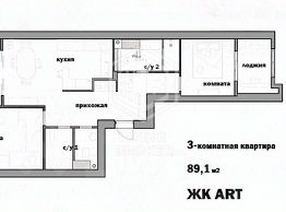 Oбщая площадь: 89,1 м2, высота потолков 3,6м. Квартира угловая - дополнительный поток света.