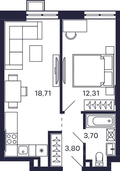 Продается квартира в ЖК Тетрис с 1 спальней на 2 этаже 28 этажного дома. Общая площадь: 40.28 кв.м. Высота потолков 2.95 м. Срок сдачи 2 квартал 2026 г. Эскроу-счет. Застройщик ГК "Садовое кольцо".