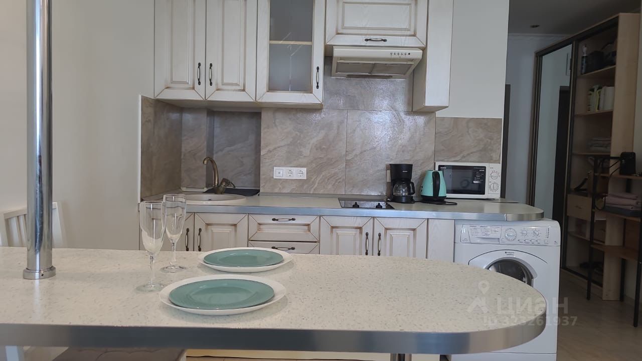 С полным комплектом мебели , кондиционер , посудомоечная машина, 2 шкафа купе , холодильник , диван , стиралка и т.д.