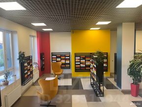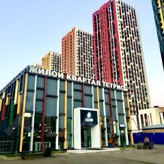 на пеpвом этажe - большой торговый центр, можно спуститься также в него на лифте.
