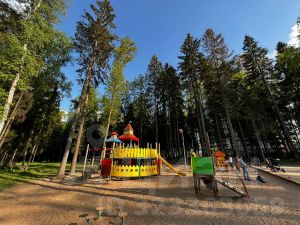 В пешей доступности от дома находится Лесопарк Изумрудные холмы — живописная природная территория в Красногорске, созданная для отдыха местных жителей. Парк включает 8 гектаров благоустроенной зоны и 100 гектаров первозданного леса, а также оборудованные пешеходные и велодорожки протяженностью около 2 км. Для детей предусмотрены игровые площадки, а для любителей активного отдыха — спортивная зона с полосой препятствий и высотным парком. В парке также есть зоны отдыха со скамейками и фонарями.