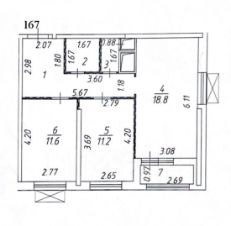 2 изолированные комнаты: 11,2 м2и 11,6 м2