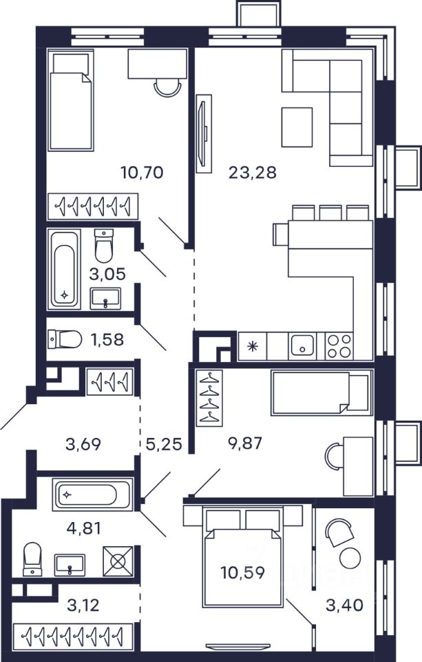 Продаётся 3-комнатная квартира в строящемся доме (Корпус 6), срок сдачи: II-кв. 2026, общей площадью 81.52 кв.м., на 23 этаже. Многофункциональный комплекс "Тетрис" будет построен в Красногорске - районном центре МО в Железнодорожном переулке.От ЖК до МКАД - примерно 2,7 км по Волоколамскому шоссе, до которого от комплекса менее 100 м.Ближе всего к ЖК находятся станции метро "Мякинино" (2,6 км), "Волоколамская" (3 км) "Митино" (3,3 км), чуть дальше - "Пятницкое шоссе", "Строгино", "Спартак" и "Тушинская".Всего 200 м от ЖК расположена железнодорожная платформа Павшино, от которой полчаса на электричке до Рижского вокзала (метро "Рижская"), а до платформы Тушино (метро "Тушинская") - 10 минут. Около платформы Павшино есть и автовокзал.Так что добираться от комплекса до центра Москвы будет достаточно просто.