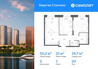 Строим кварталы для жизни с заботой о будущем. Предлагается 2-комнатная квартира комфорт-класса 50,23 кв.м в корпусе 1 на 24 этаже, в ЖК "Квартал Строгино"