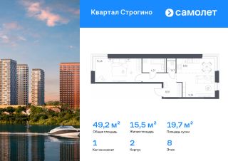 Строим кварталы для жизни с заботой о будущем. Предлагается 1-комнатная квартира комфорт-класса 49,24 кв.м в корпусе 2 на 8 этаже, в ЖК "Квартал Строгино"