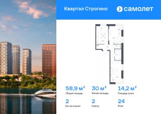 Строим кварталы для жизни с заботой о будущем. Предлагается 2-комнатная квартира комфорт-класса 58,87 кв.м в корпусе 2 на 24 этаже, в ЖК "Квартал Строгино"