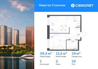 Строим кварталы для жизни с заботой о будущем. Предлагается 1-комнатная квартира комфорт-класса 38,39 кв.м в корпусе 2 на 19 этаже, в ЖК "Квартал Строгино"