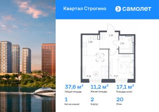 Строим кварталы для жизни с заботой о будущем. Предлагается 1-комнатная квартира комфорт-класса 37,57 кв.м в корпусе 2 на 20 этаже, в ЖК "Квартал Строгино"