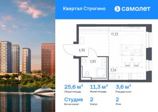 Строим кварталы для жизни с заботой о будущем. Предлагается квартира студия комфорт-класса 25,63 кв.м в корпусе 2 на 2 этаже, в ЖК "Квартал Строгино"