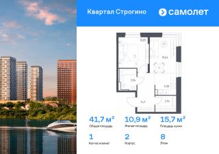 Строим кварталы для жизни с заботой о будущем. Предлагается 1-комнатная квартира комфорт-класса 41,74 кв.м в корпусе 2 на 8 этаже, в ЖК "Квартал Строгино"
