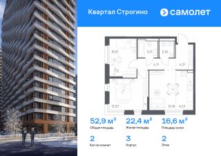 Строим кварталы для жизни с заботой о будущем. Предлагается 2-комнатная квартира комфорт-класса 52,94 кв.м в корпусе 3 на 2 этаже, в ЖК "Квартал Строгино"