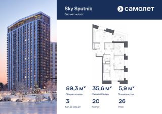 Строим кварталы для жизни с заботой о будущем. Предлагаются 3-комнатные апартаменты бизнес-класса 89,31 кв.м в корпусе 20 на 26 этаже, в Sky Sputnik