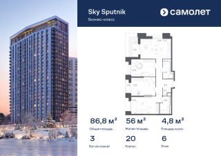 Строим кварталы для жизни с заботой о будущем. Предлагаются 3-комнатные апартаменты бизнес-класса 86,8 кв.м в корпусе 20 на 6 этаже, в Sky Sputnik