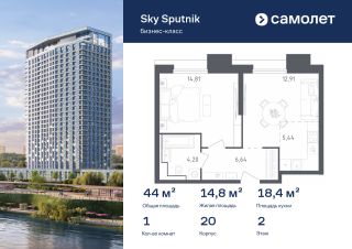 Строим кварталы для жизни с заботой о будущем. Предлагаются 1-комнатные апартаменты бизнес-класса 44 кв.м в корпусе 20 на 2 этаже, в Sky Sputnik