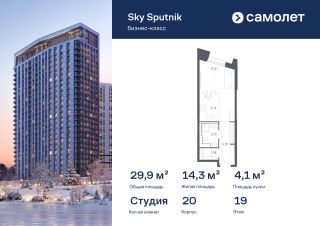 Строим кварталы для жизни с заботой о будущем. Предлагаются апартаменты студия бизнес-класса 29,86 кв.м в корпусе 20 на 19 этаже, в Sky Sputnik