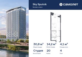 Строим кварталы для жизни с заботой о будущем. Предлагаются апартаменты студия бизнес-класса 30,75 кв.м в корпусе 20 на 4 этаже, в Sky Sputnik