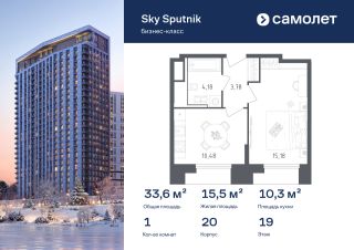 Строим кварталы для жизни с заботой о будущем. Предлагаются 1-комнатные апартаменты бизнес-класса 33,62 кв.м в корпусе 20 на 19 этаже, в Sky Sputnik