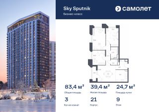 Строим кварталы для жизни с заботой о будущем. Предлагаются 3-комнатные апартаменты бизнес-класса 83,39 кв.м в корпусе 21 на 9 этаже, в Sky Sputnik