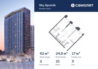 Строим кварталы для жизни с заботой о будущем. Предлагаются 2-комнатные апартаменты бизнес-класса 62 кв.м в корпусе 21 на 3 этаже, в Sky Sputnik