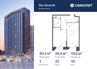 Строим кварталы для жизни с заботой о будущем. Предлагаются 1-комнатные апартаменты бизнес-класса 50,12 кв.м в корпусе 21 на 15 этаже, в Sky Sputnik