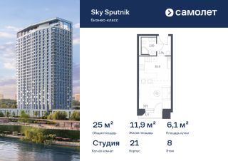 Строим кварталы для жизни с заботой о будущем. Предлагаются апартаменты студия бизнес-класса 25,04 кв.м в корпусе 21 на 8 этаже, в Sky Sputnik