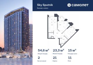 Строим кварталы для жизни с заботой о будущем. Предлагаются 2-комнатные апартаменты бизнес-класса 54,62 кв.м в корпусе 21 на 11 этаже, в Sky Sputnik
