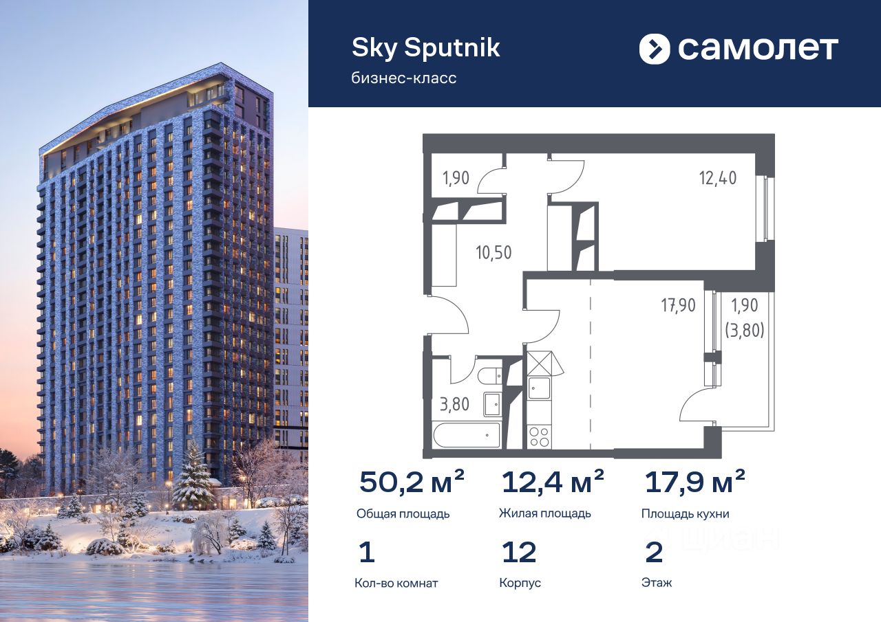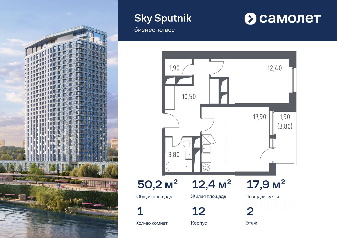 Строим кварталы для жизни с заботой о будущем. Предлагаются 1-комнатные апартаменты бизнес-класса 50,2 кв.м в корпусе 12 на 2 этаже, в Sky Sputnik