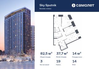 Строим кварталы для жизни с заботой о будущем. Предлагаются 3-комнатные апартаменты бизнес-класса 82,51 кв.м в корпусе 19 на 14 этаже, в Sky Sputnik