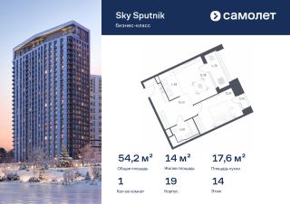 Строим кварталы для жизни с заботой о будущем. Предлагаются 1-комнатные апартаменты бизнес-класса 54,17 кв.м в корпусе 19 на 14 этаже, в Sky Sputnik