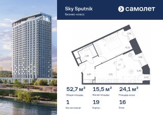 Строим кварталы для жизни с заботой о будущем. Предлагаются 1-комнатные апартаменты бизнес-класса 52,73 кв.м в корпусе 19 на 16 этаже, в Sky Sputnik
