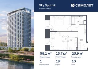 Строим кварталы для жизни с заботой о будущем. Предлагаются 1-комнатные апартаменты бизнес-класса 58,06 кв.м в корпусе 19 на 10 этаже, в Sky Sputnik
