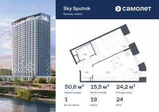 Строим кварталы для жизни с заботой о будущем. Предлагаются 1-комнатные апартаменты бизнес-класса 50,64 кв.м в корпусе 19 на 24 этаже, в Sky Sputnik