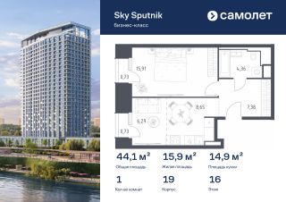 Строим кварталы для жизни с заботой о будущем. Предлагаются 1-комнатные апартаменты бизнес-класса 44,05 кв.м в корпусе 19 на 16 этаже, в Sky Sputnik