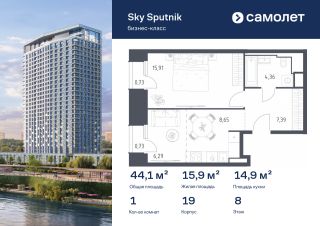 Строим кварталы для жизни с заботой о будущем. Предлагаются 1-комнатные апартаменты бизнес-класса 44,06 кв.м в корпусе 19 на 8 этаже, в Sky Sputnik