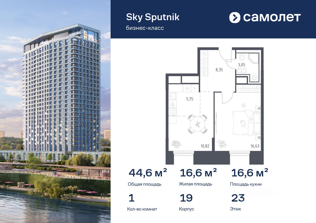Строим кварталы для жизни с заботой о будущем. Предлагаются 1-комнатные апартаменты бизнес-класса 44,6 кв.м в корпусе 19 на 23 этаже, в Sky Sputnik
