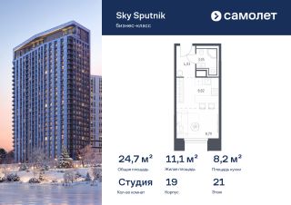 Строим кварталы для жизни с заботой о будущем. Предлагаются апартаменты студия бизнес-класса 24,69 кв.м в корпусе 19 на 21 этаже, в Sky Sputnik