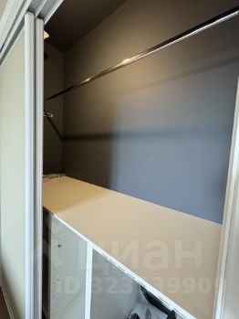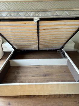 В спальне вместительный встроенный шкаф, кровать с подъемным механизмом.