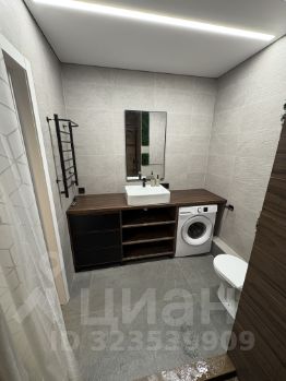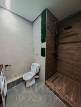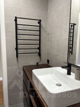 В ванной сделана гидроизоляция, столешница из лиственницы, душевая с тропическим душем, электрический полотенцесушитель.