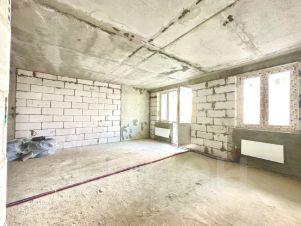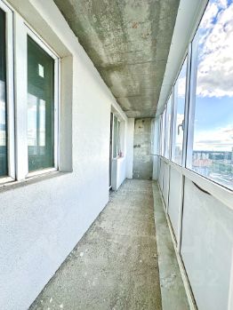 Квартира без отделки, свободная планировка площадью 52 м2 имеет просторную лоджию.