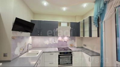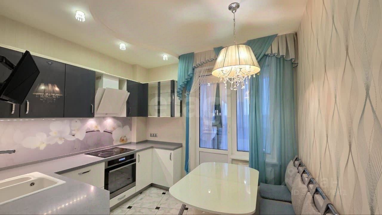 — Уютная кухня 10 м² с встроенным гарнитуром со столешницей из искусственного камня и дорогой техникой с выходом на большую застеклённую лоджию с панорамными окнами