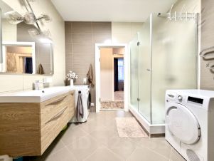 В кухне-гостиной, прихожей, спальне и санузлах теплые полы, установлен водонагреватель.
