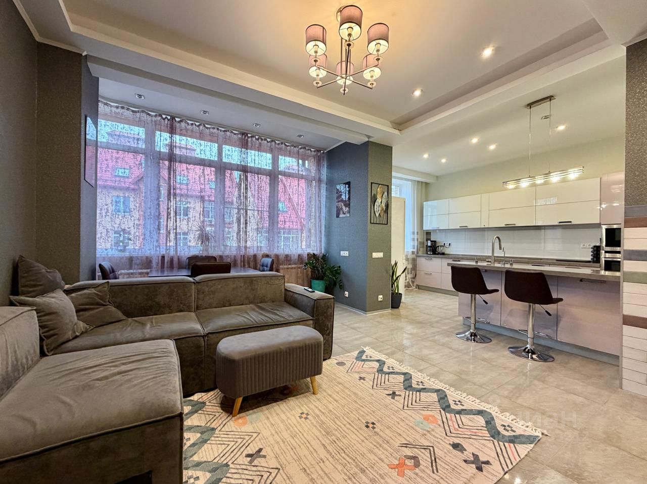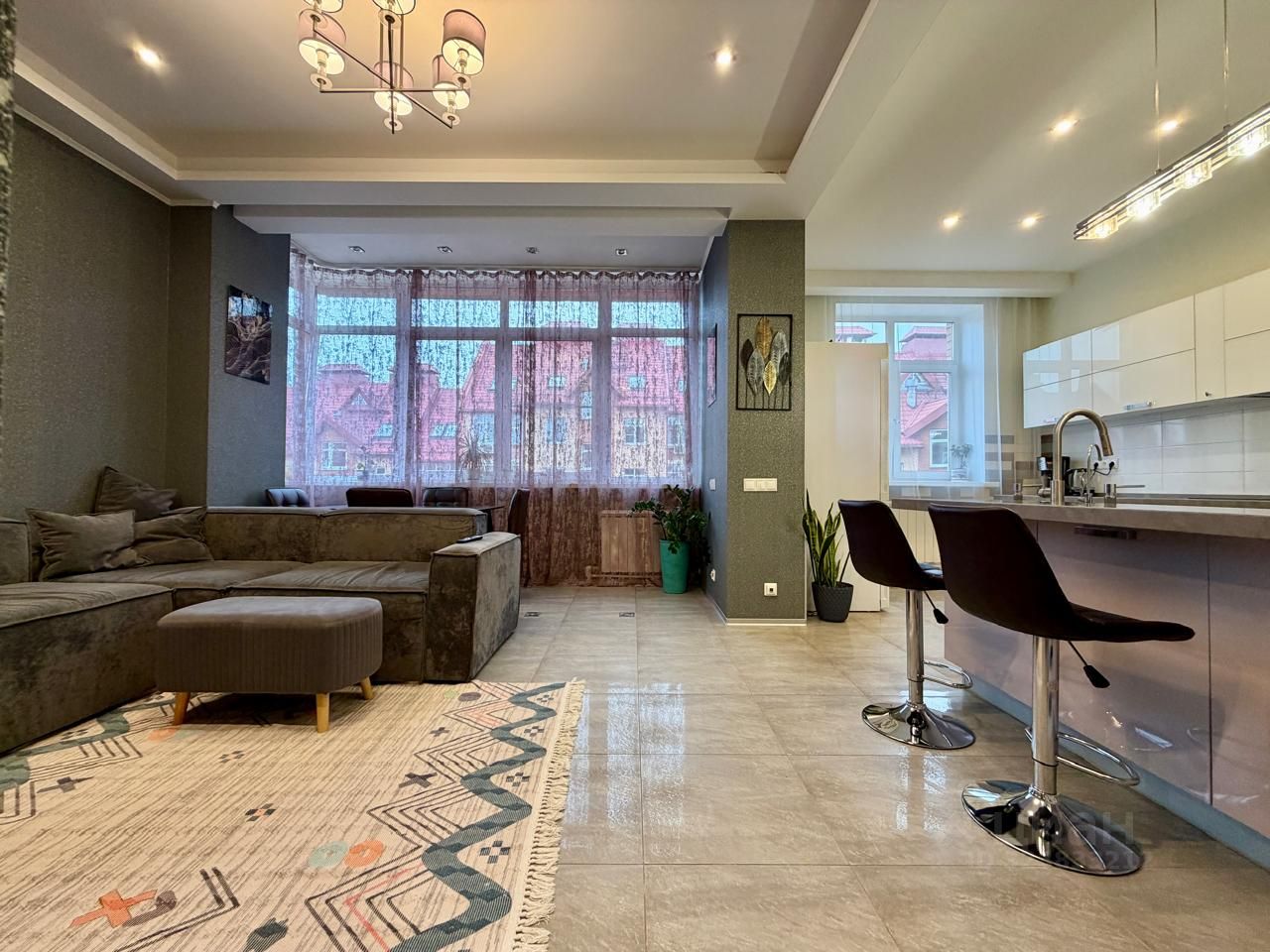 В квартире выполнен дизайнерский ремонт с использованием качественных европейских материалов.